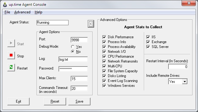 The Windows up.time Agent does not have a default password. A password can be added through the up.time Agent Console or in the Windows Registry Editor. Using the up.time Agent Console